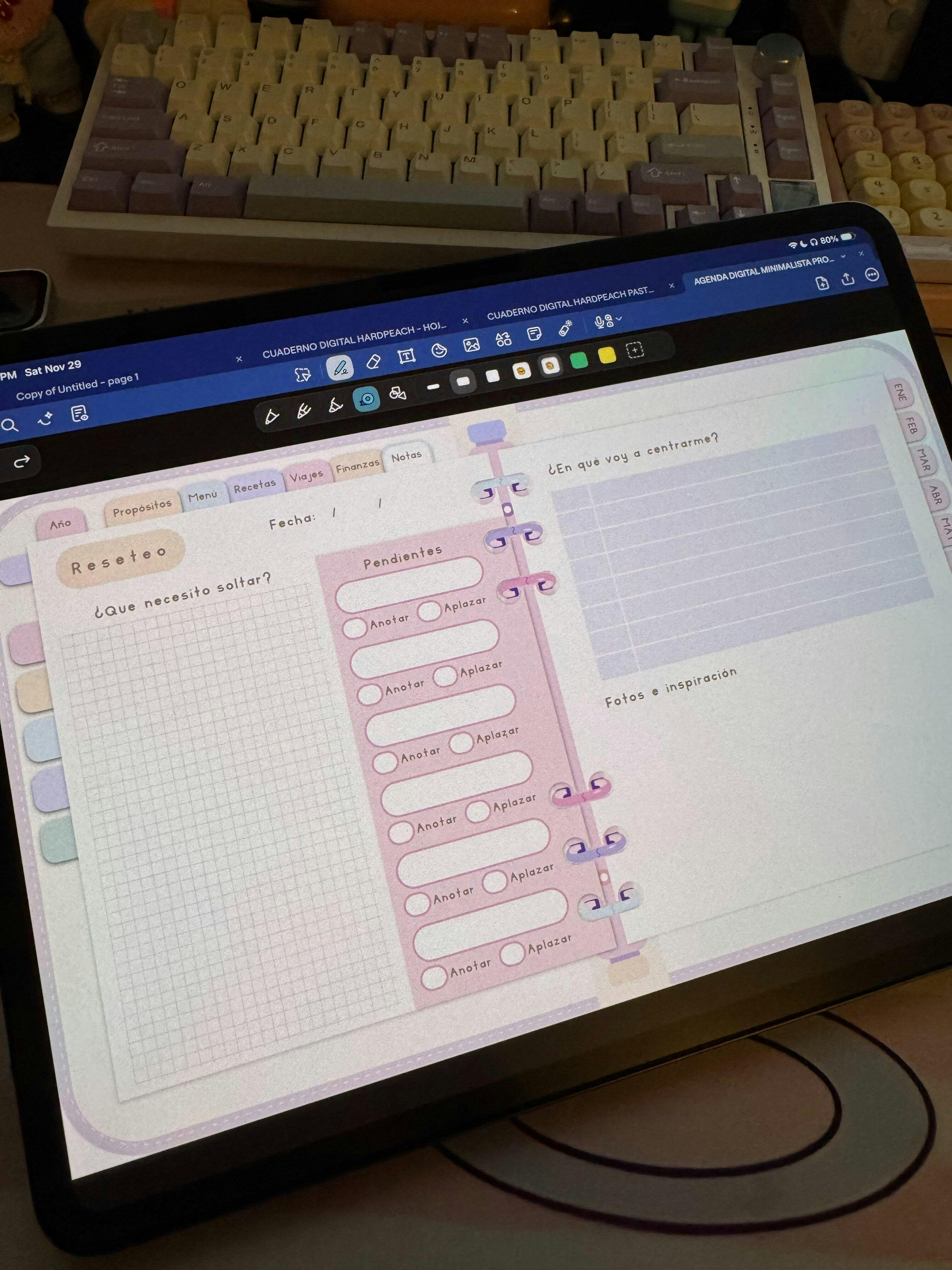 En la imagen estoy en el apartado de extra agregando más de la parte de finanzas porq en realidad es lo único que yo le agregaría mas, quizás pues porq ya soy una adulta con millones de responsabilidades... No soy una niña. Pero los demás apartados superaron mis expectativas! La creatividad y calidad de hardpeach es maravillosa! Sé que la voy a aprovechar! Lo que me cuesta si es usarla en el cel y la verdad es que necesito poder usarla ahí! Ojalá nos des más tips! Saludos 😘
