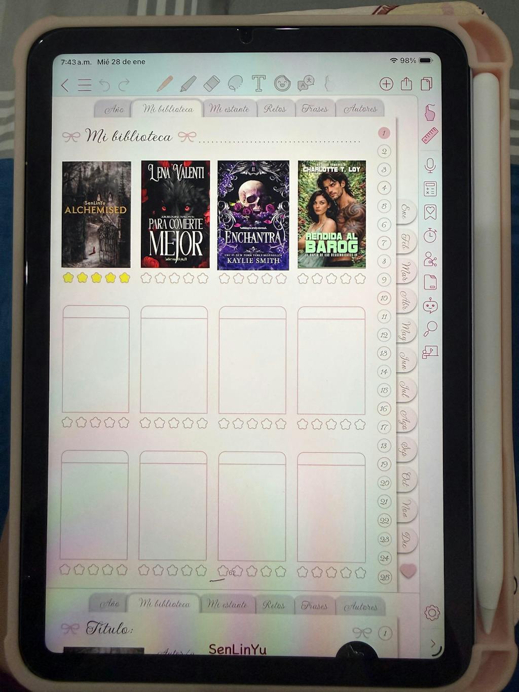 Me parece bellísimo, súper fácil de navegar en él. Estoy lista para llenarlo con mis lecturas.