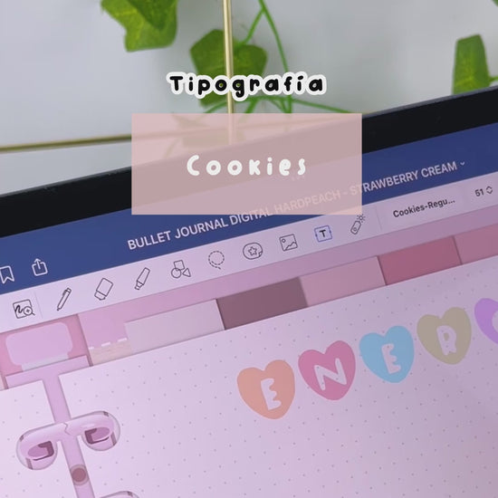 The Cookies typeface includes all main characters, uppercase, lowercase, numbers, vowels with accents (Spanish), and open accents (à) and signs. It also includes accents and the letters ñ and ç.