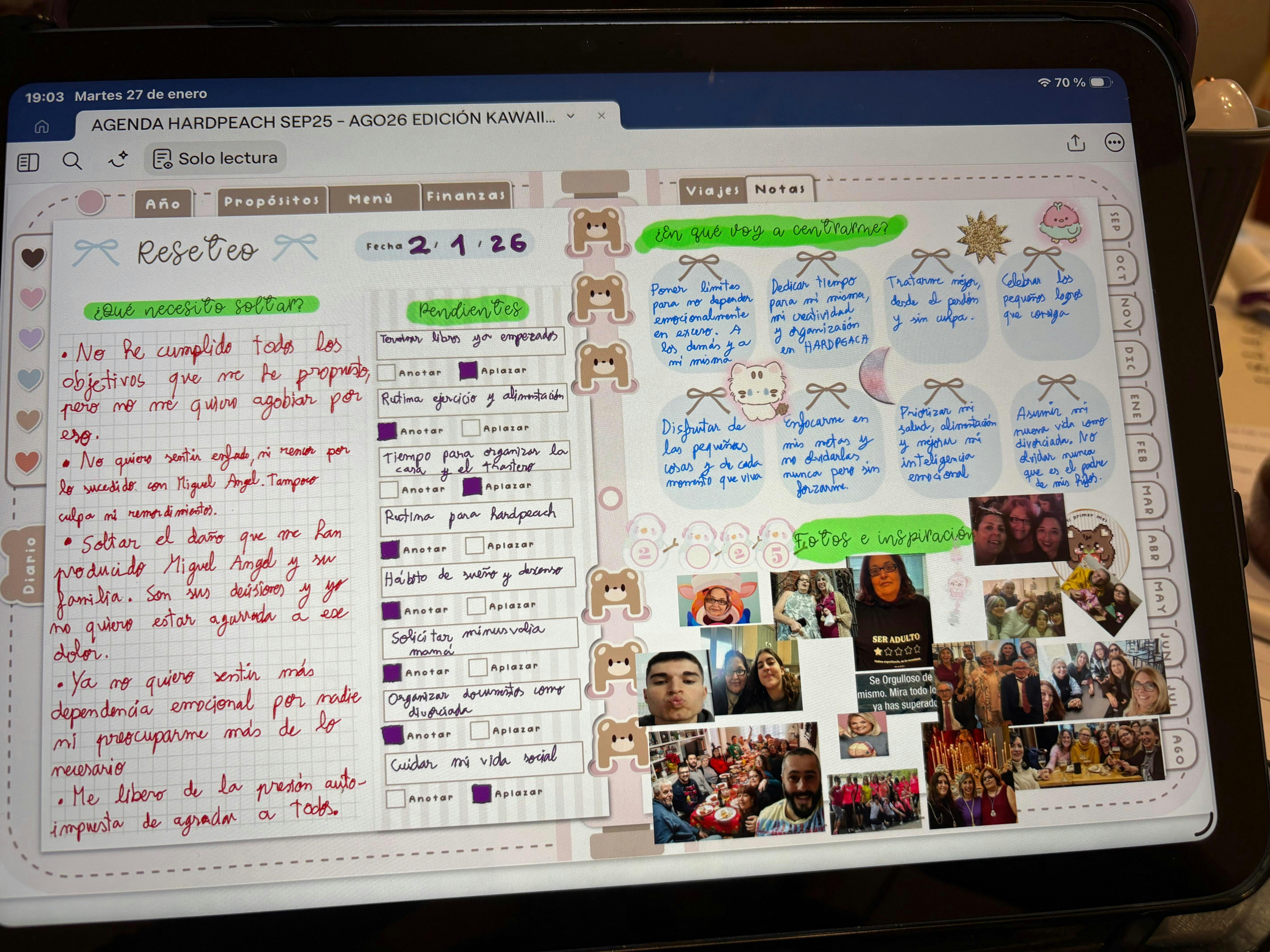 Estos últimos dias he decido porfin ponerme al dia de lleno con la agenda a pesar de que voy ñaso a paso la he disfrutado mucho, es mi primera agenda digital y me encanta, la encuentro maravillosa y hacerla junto a ti lo hace mas entretenido aún, muchas gracias 💕🤭