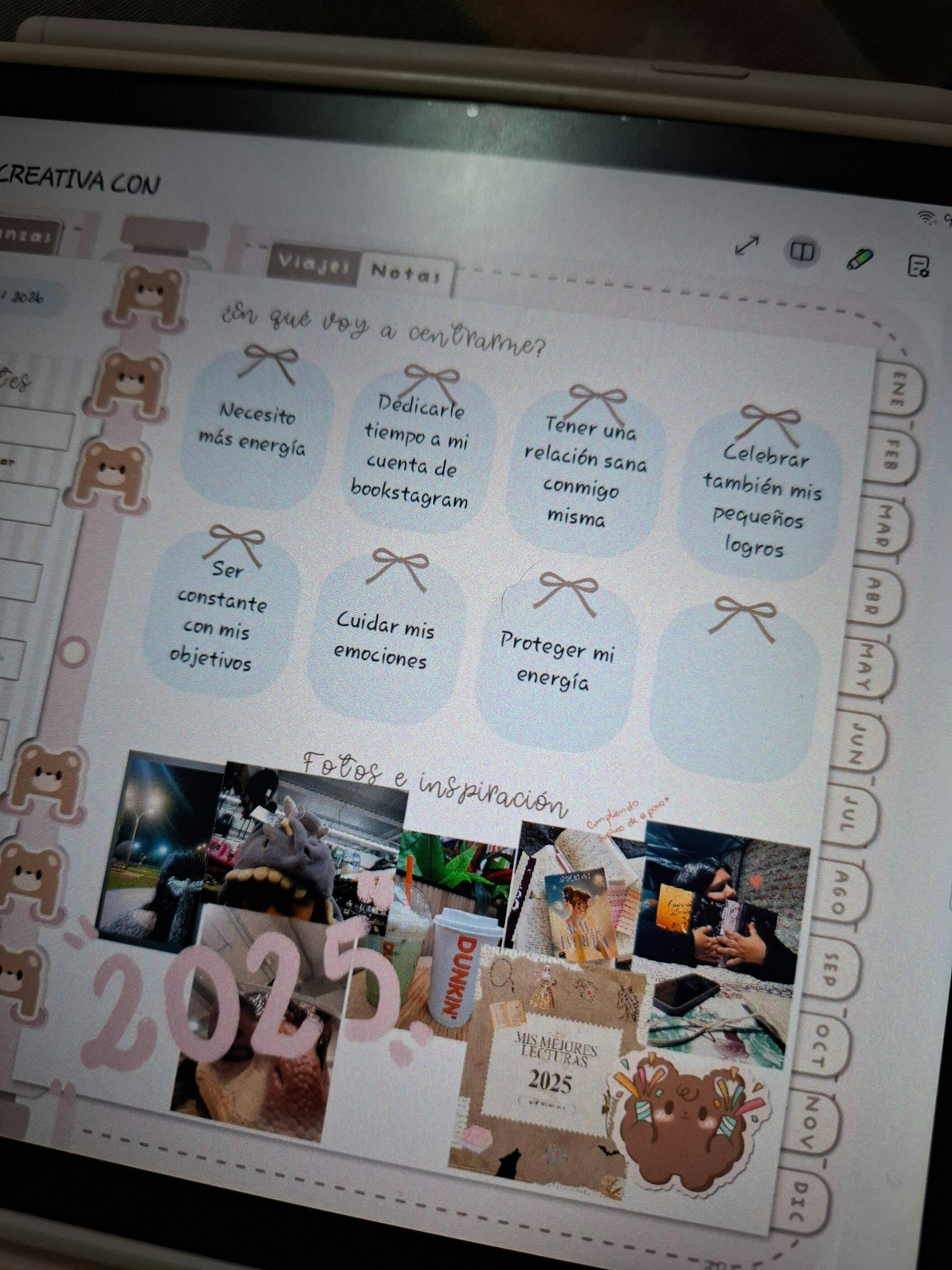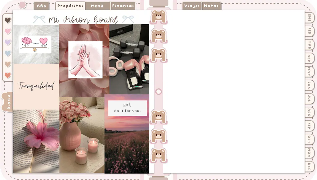 - Vision board digital: crea tu tablero de inspiración con imágenes, palabras o ideas que representen tu visión del año.