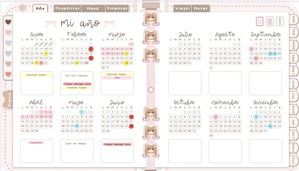 - Navegación con pestañas interactivas: muevéte de forma rápida y sencilla por todas las secciones y meses con solo un clic, sin perder tiempo buscando.
