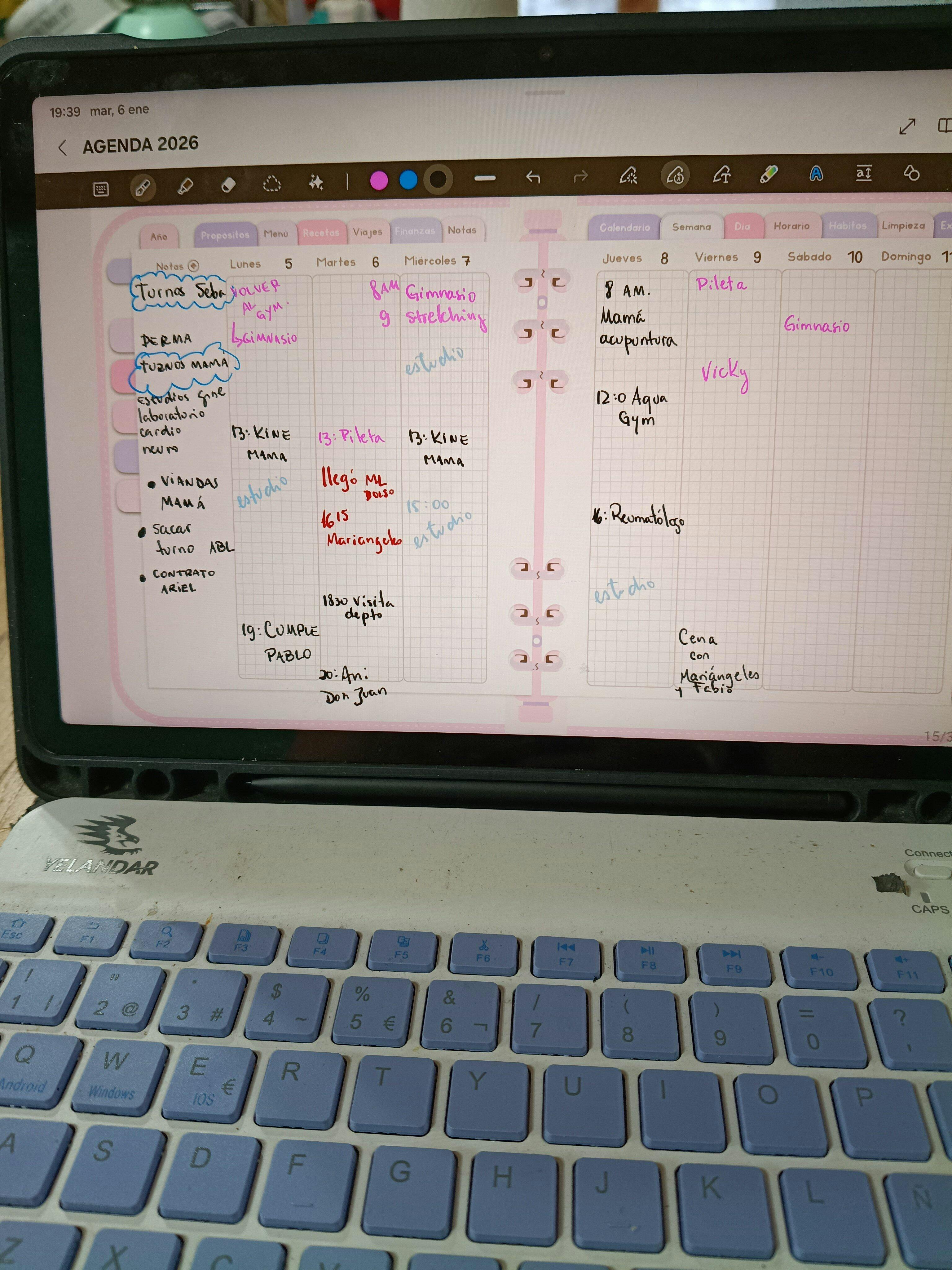 Es el segundo año que uso la agenda y realmente me organiza todas mis actividades. Lo único que no me encantó fue la distribución de la semana a la vista, la del año pasado tenía más lugar en cada día, ahora con los siete días encolumnados queda muy angosto para mí gusto