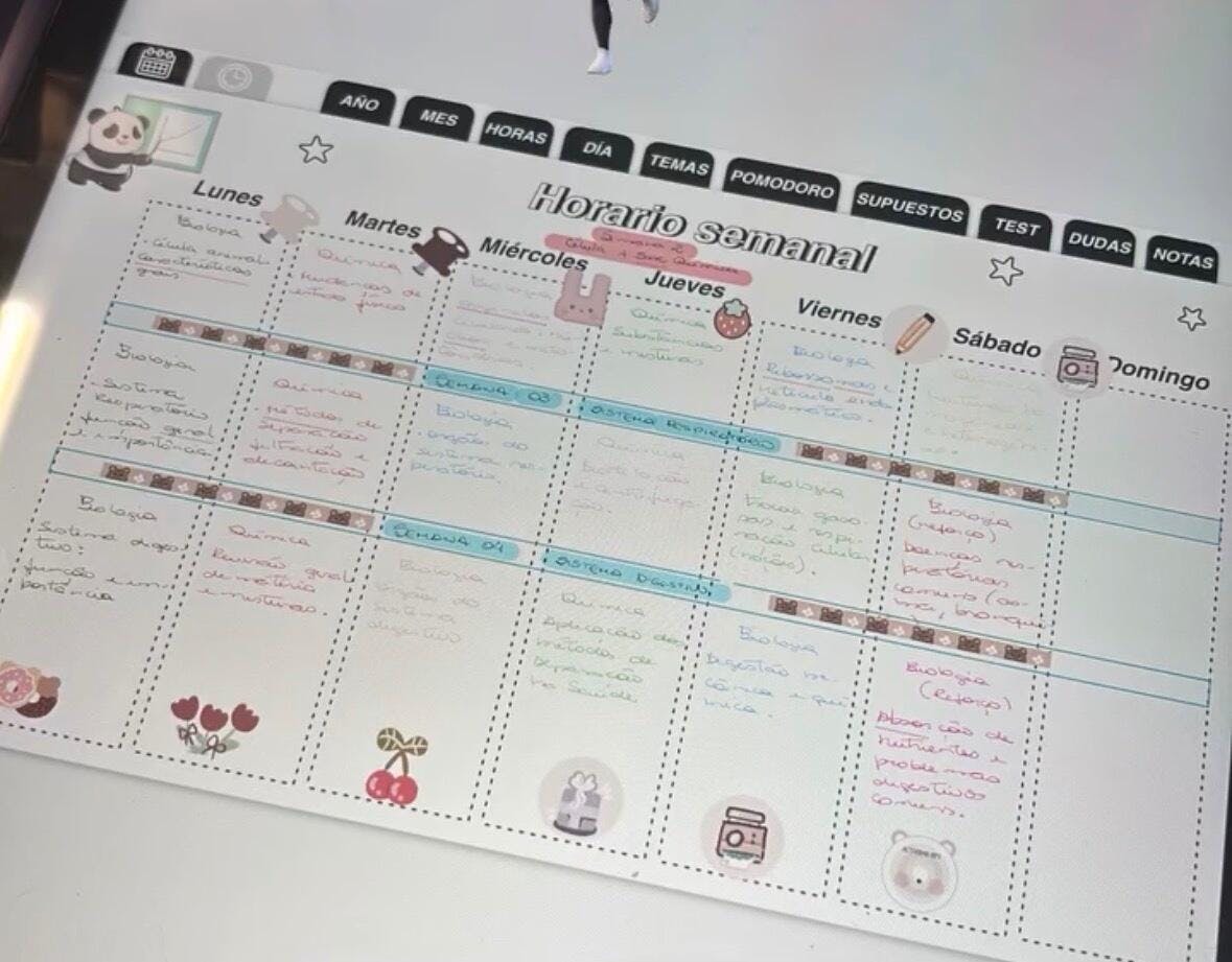 - Planner de organización por horas. Optimiza tu tiempo de estudio creando una rutina de estudio que se cumple día a día.
