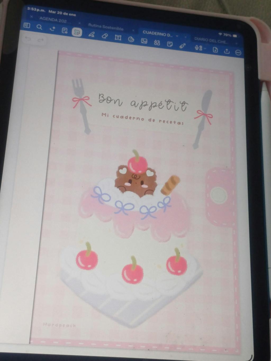 La papelería digital HardPeach está pensada para utilizarse en distintos dispositivos (iPad, tablet, ordenador o móvil). Puedes instalarla y utilizarla en diferentes dispositivos mediante una app de notas compatible.