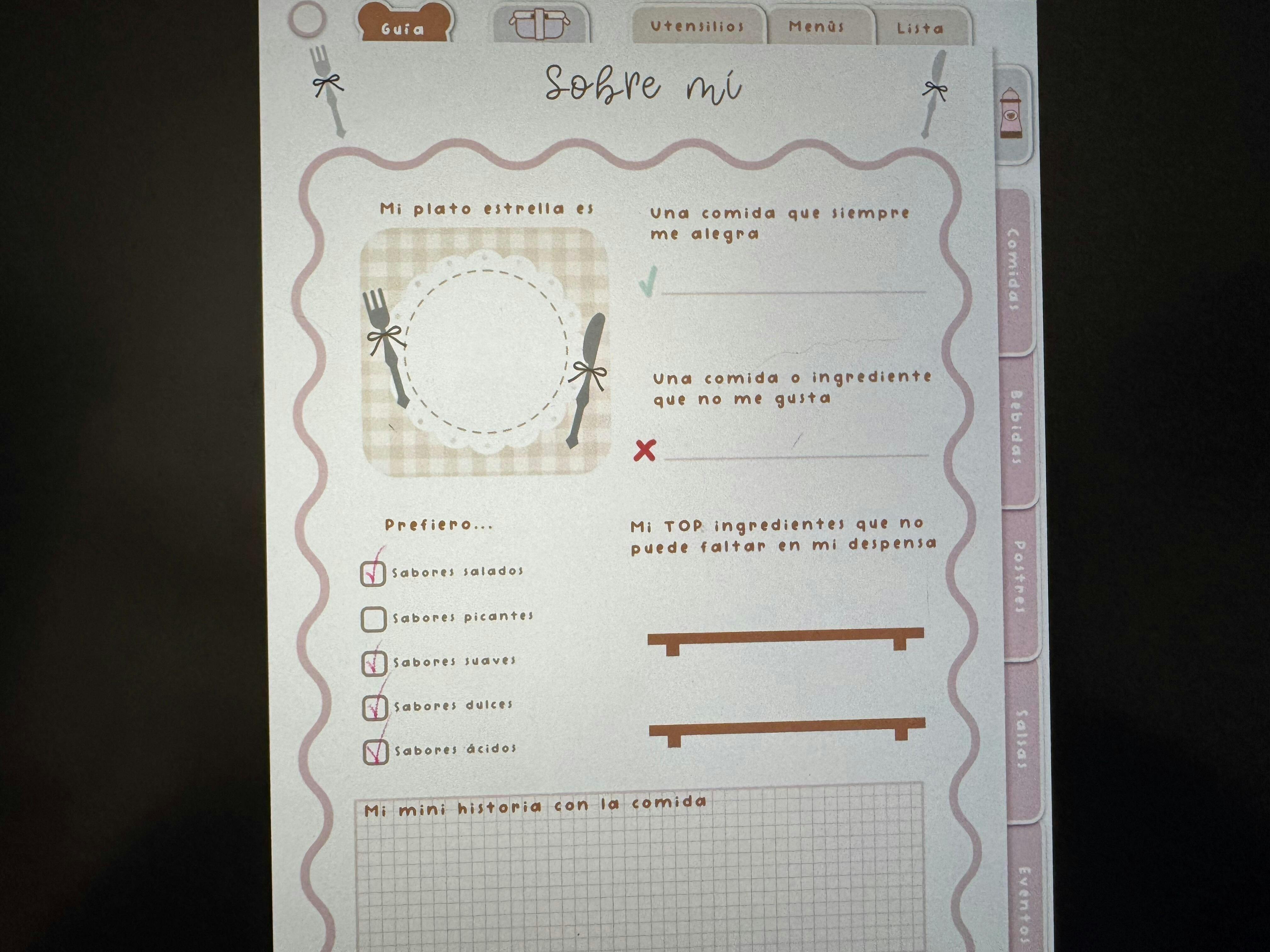 Me encanta cocinar y este cuaderno de recetas me ayuda a que no se me olvide los ingredientes y recetas que quiero preparar
