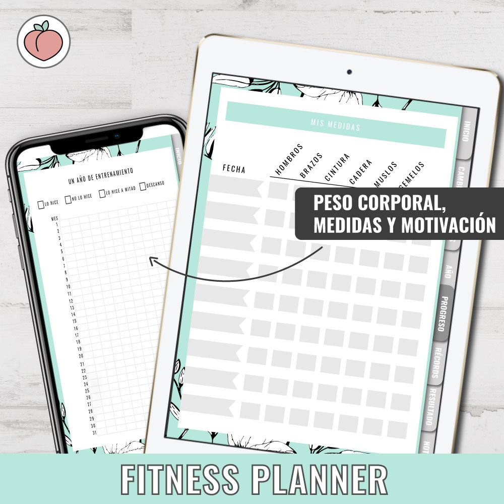 Con esta sección te será muy sencillo observar los cambios en tu peso corporal, observando si estás mejorando como te gustaría y tenerlo todo controlado ¡Sin preocupaciones! Con este digital fitness planner lo tendrás más controlado.