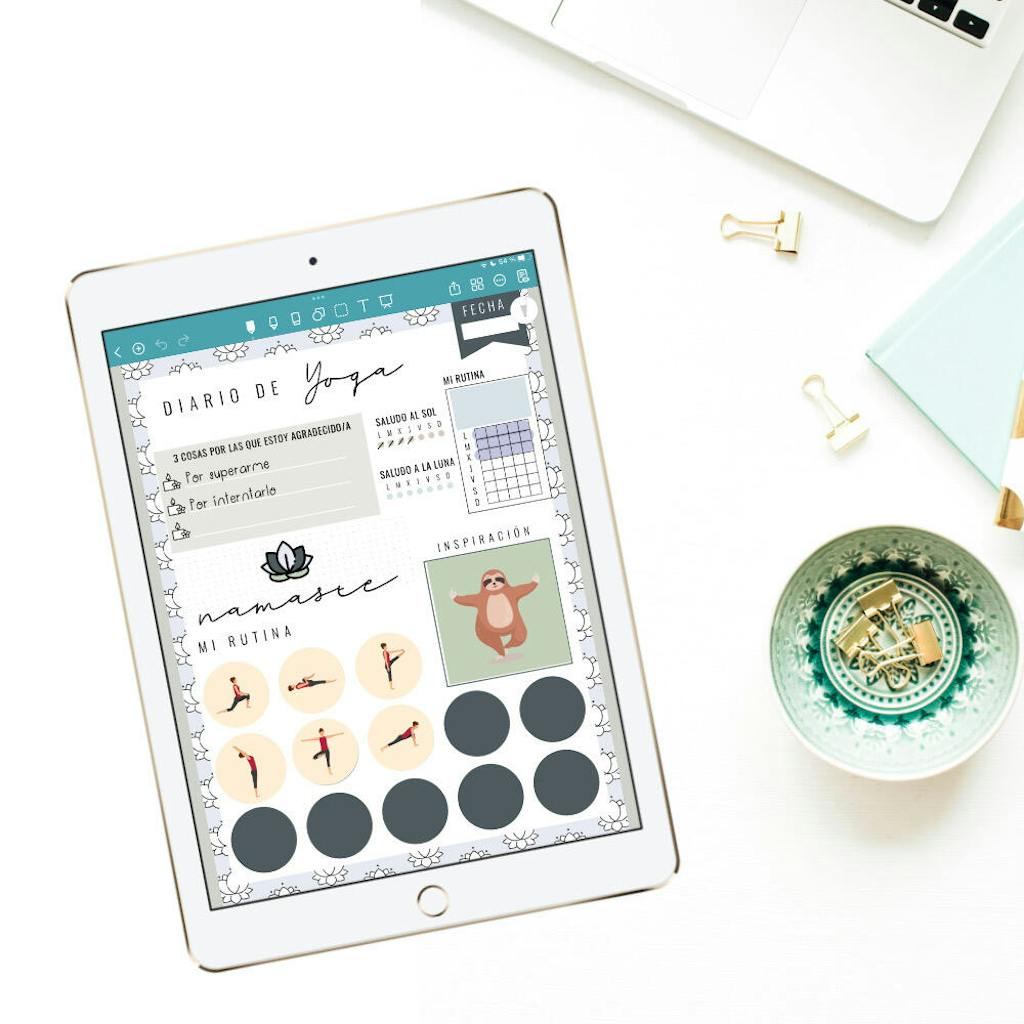 Este pack para auténticos yoguis incluye: fondos de pantallas, más de 160 pegatinas digitales con diferentes asanas o posturas para incluir en tu rutina de yoga y un diario completo que cuenta con varias portadas a elegir.