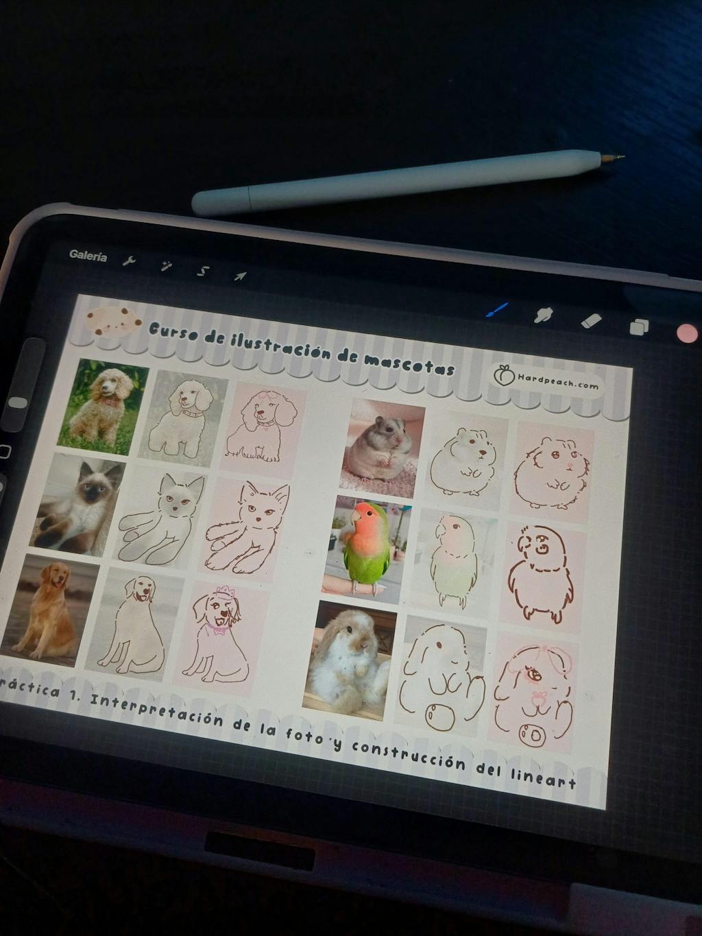 - Herramientas y clases: En este curso de ilustración de mascotas digital de HardPeach veremos todo lo necesario para que aprendas desde cero. Experimenta con las distintas opciones y estilos que explicamos para encontrar los que se adapten mejor a tu estilo.