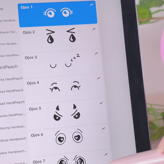 Este KIT de pinceles para Procreate incluye diferentes estilos de ojos, bocas y accesorios para que puedas combinarlos y dar forma a la cara de tus personajes Kawaii. Incluye pinceles con diferentes expresiones y estilos para adaptarlos a varias situaciones.