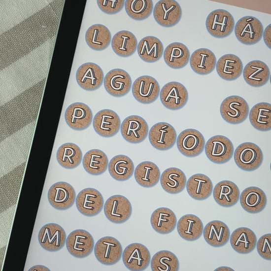 KIT de stickers digitales con diferentes tipos de palabras para crear combinaciones, es una colección fácil de utilizar y una opción perfecta para agendas digitales, diario y bullet journal.