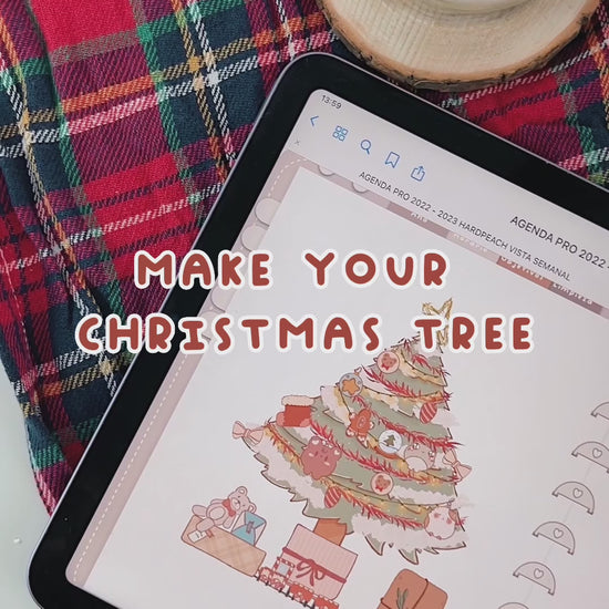 Desata tu creatividad esta temporada navideña con un completo kit de accesorios para hacer y decorar tu propio árbol de Navidad digital. Este kit está lleno de decoraciones navideñas, luces de colores e incluso nieve, lo que te permite personalizar un árbol de Navidad digital que puedes colocar en tu diario digital, cuaderno, bullet journal o planificador. ¡Haz tantas versiones del árbol como desees!